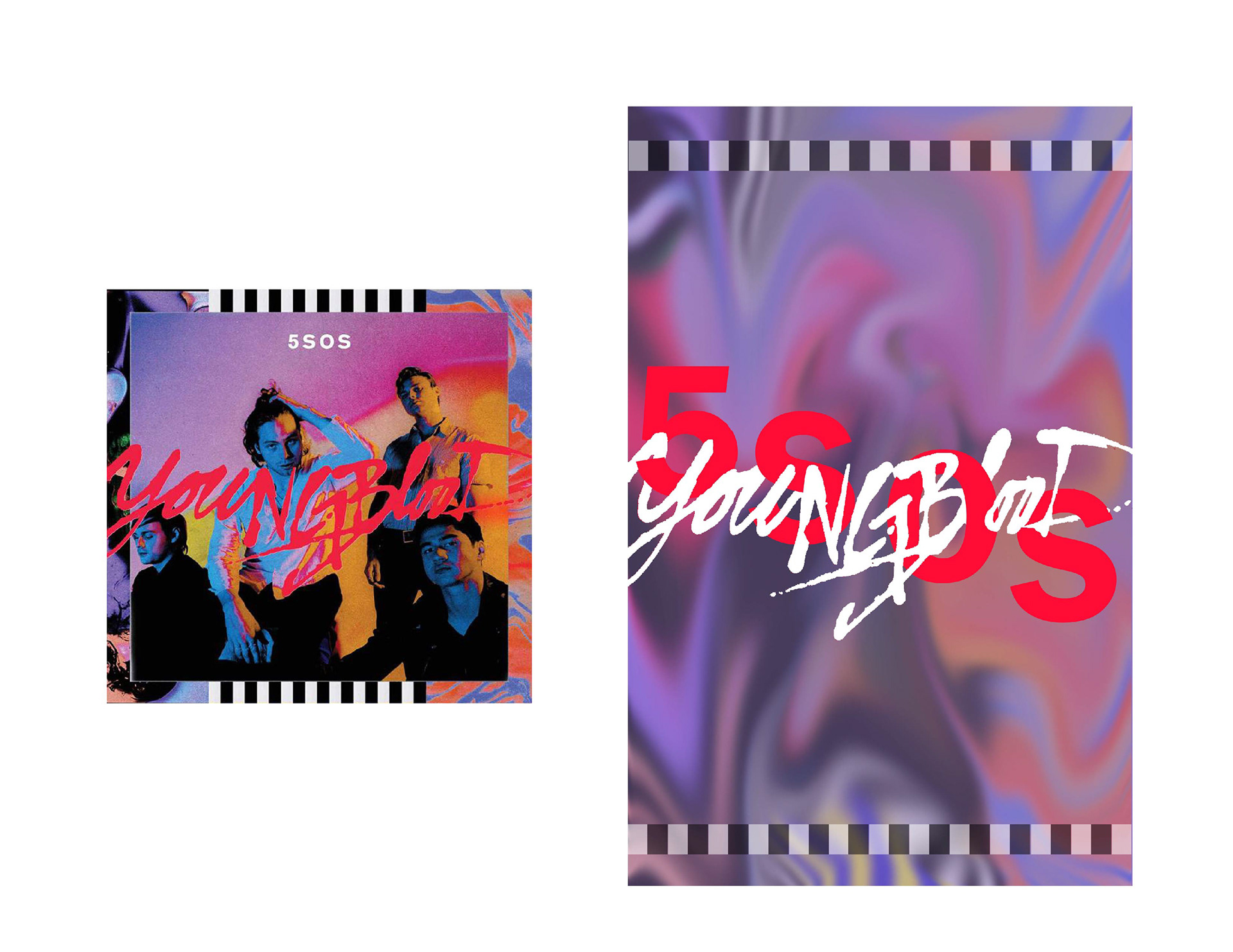 This series of posters was made to capture the essence from each album while taking unique characteristics, such as color and font, from each cover to create a visual embodiment of the artists and their music.